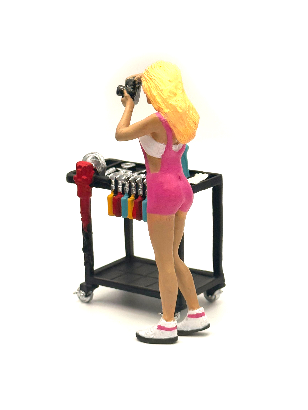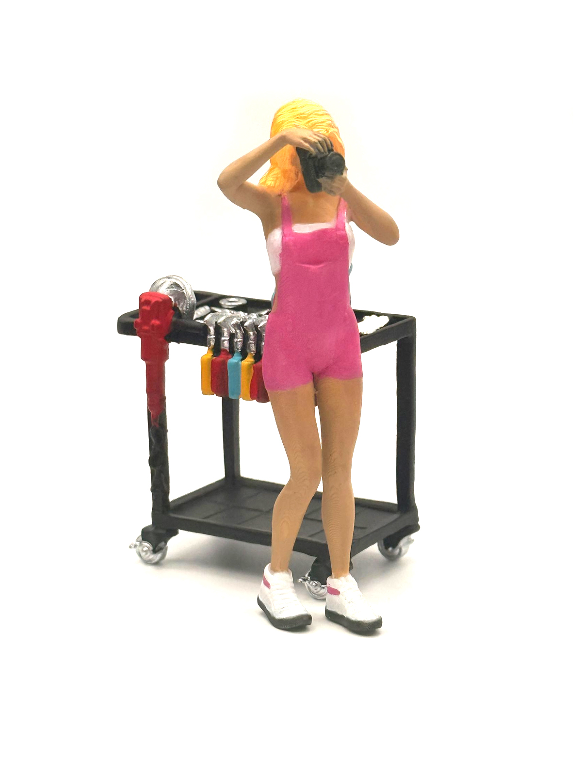 Die Figur eignet sich perfekt für Rennstrecken-Dioramen, Car-Spotting-Szenen, Tuningtreffen, Werkstatt-Events oder alle Vitrinenszenen, die etwas mehr Atmosphäre und Action benötigen.