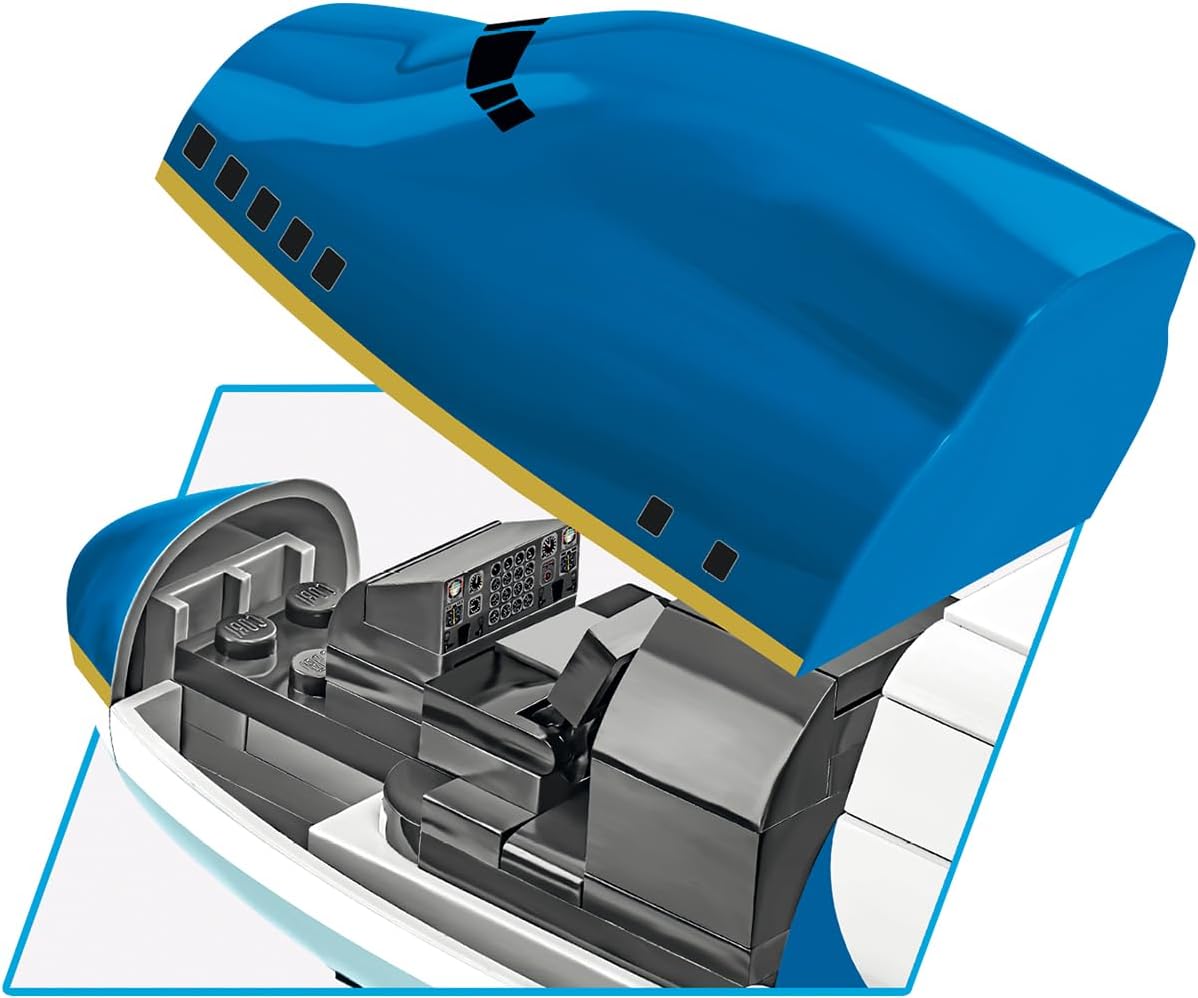 Besondere Merkmale sind bewegliche Turbinen in den Motoren und detaillierte Drucke mit USAF-Markierungen sowie US-Nationalsymbolen. Empfohlen wird das Set für Kinder ab 9 Jahren.