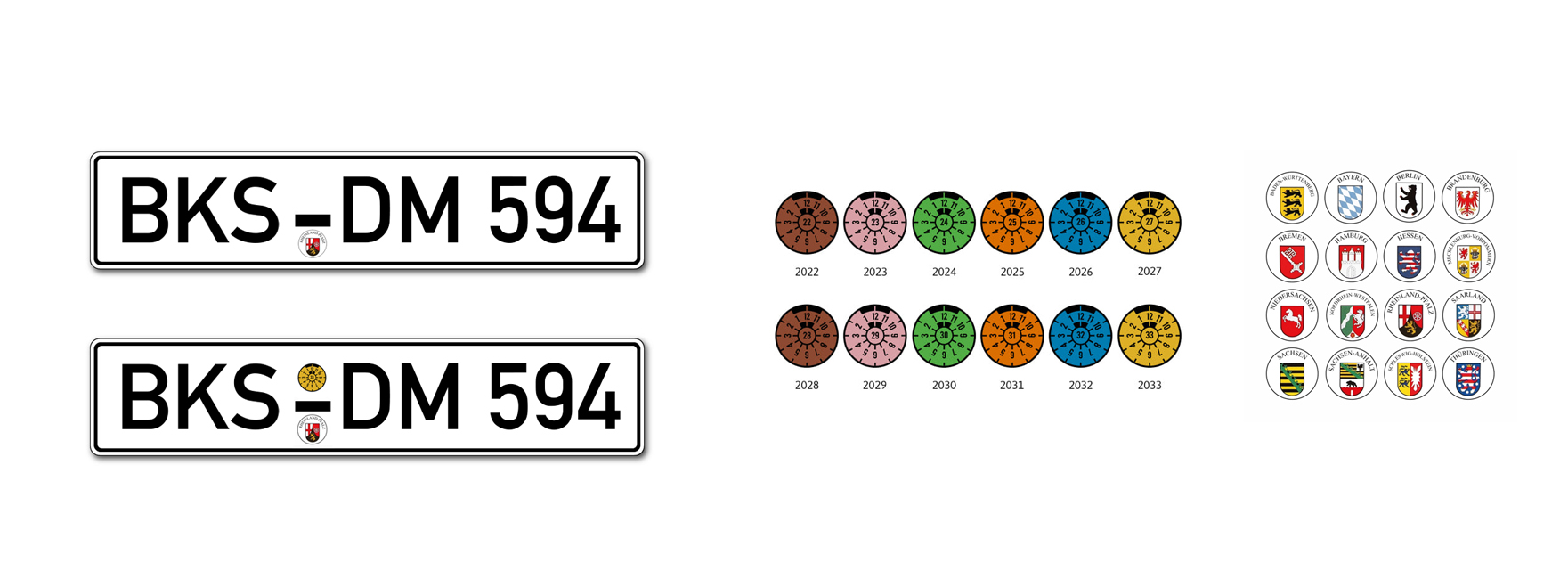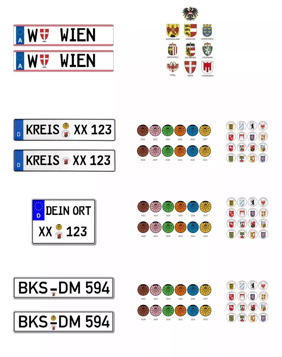 Bitte unbedingt nach dem Kauf über "Verkäufer kontaktieren" Die gewünschte Kennzeichenausführung, Ihre gewünschten Buchstaben, Zahlen, TÜV und Bundesland mitteilen, sonst muss der Kauf storniert werden.