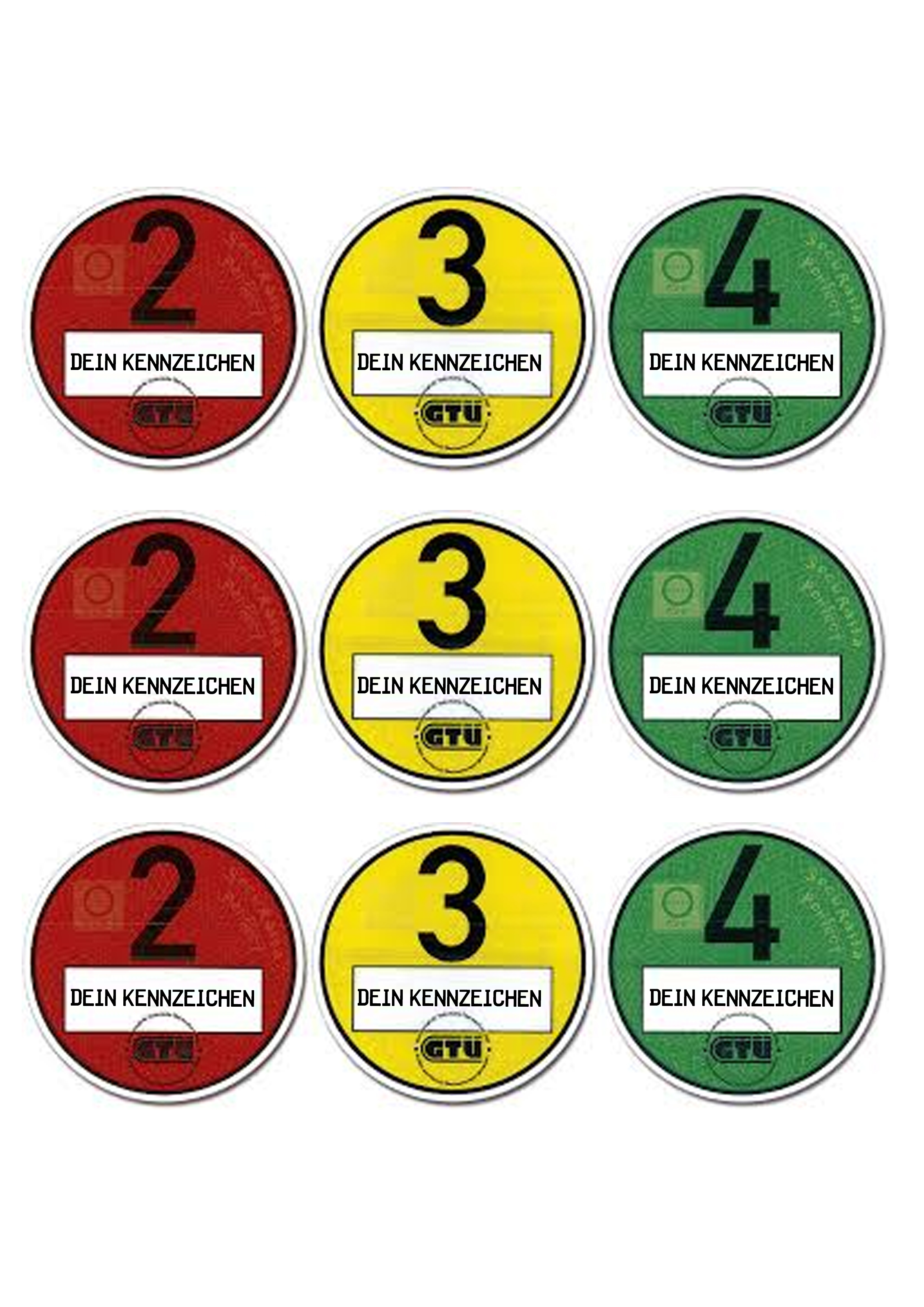 Sie erhalten 9 Umweltplaketten im Maßstab 1:18 !