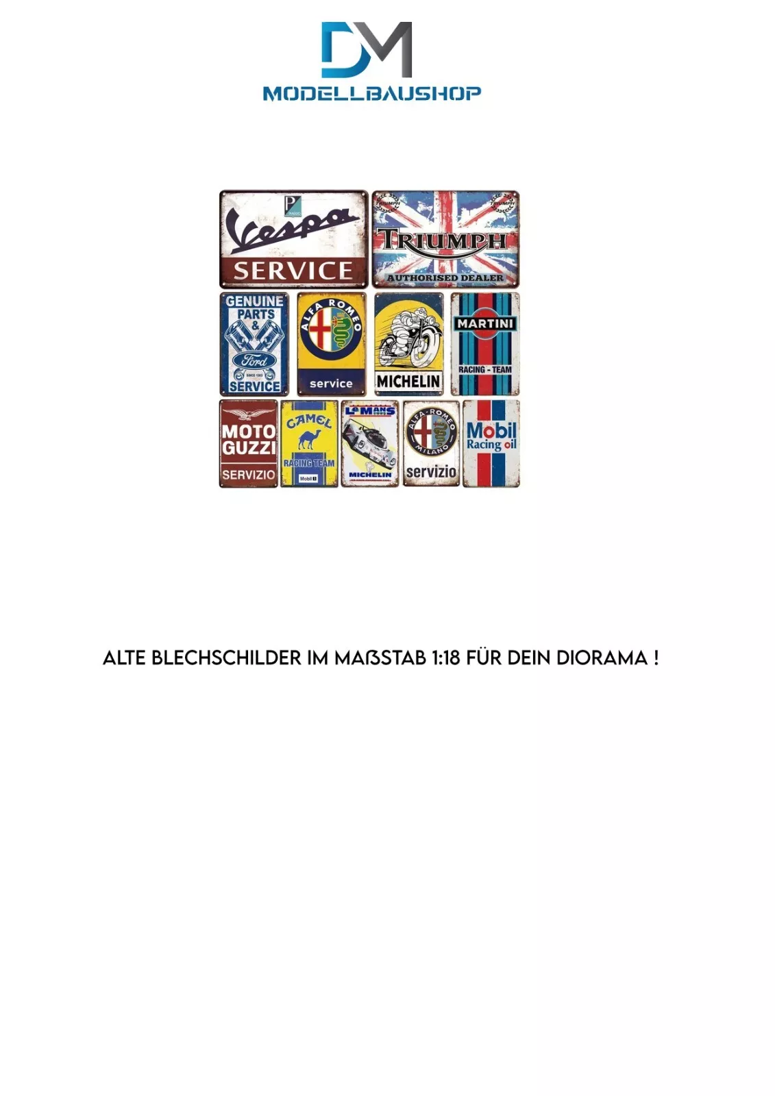 Sie erhalten hier eine Blechschildersammlung im Maßstab 1:18 !