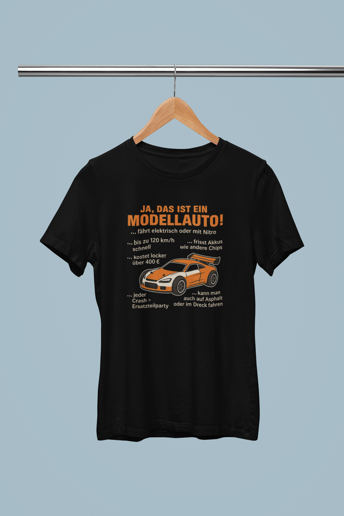 Ob auf dem Parcours, beim Schrauben oder einfach im Alltag: Dieses Shirt verbindet Humor mit Leidenschaft für den Modellbau.